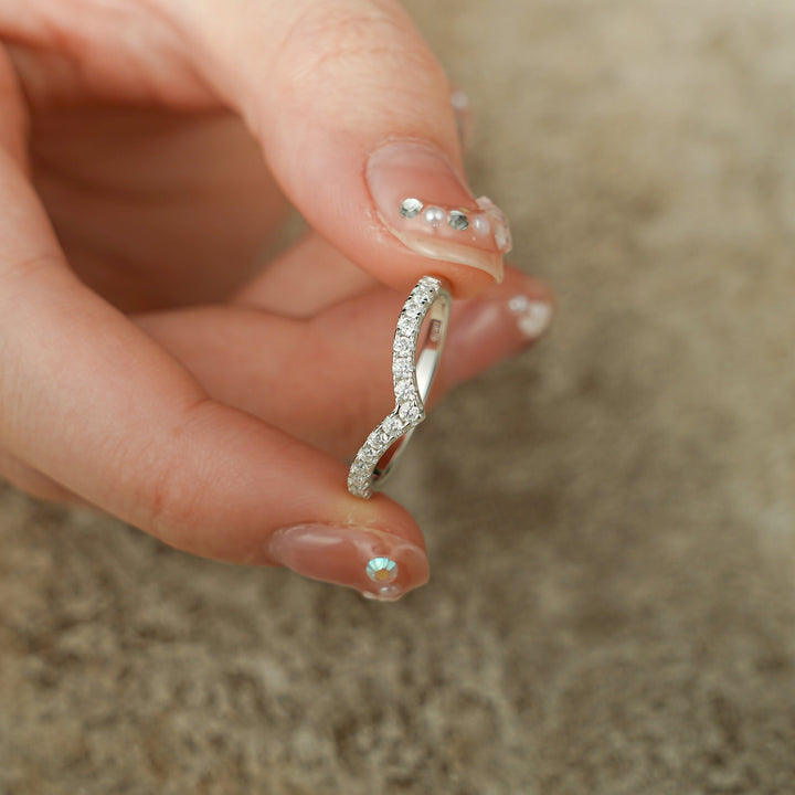 0.13CT Round Cut Curved CVD EF/VVS Diamond Wedding Band For Women