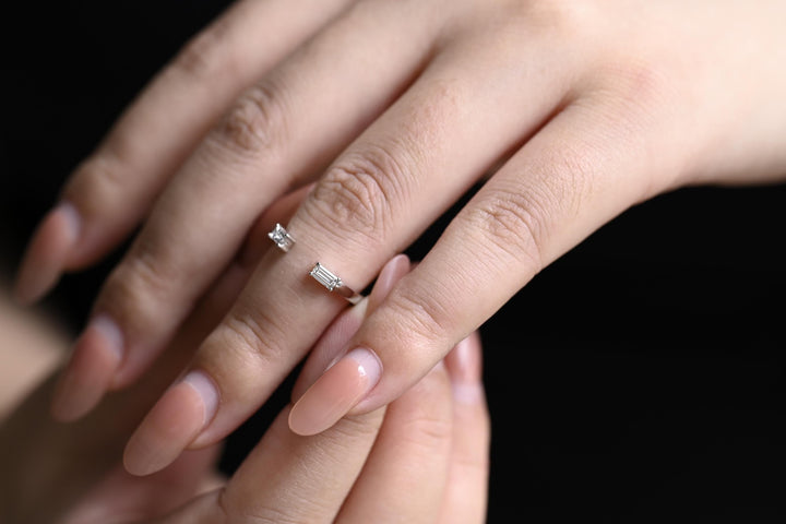 ✥ The Ring Shown in the Picture Holds Beautiful 0.14CT Open Two Stone EF-Color, VVS-Clarity CVD Lab Grown Diamonds.