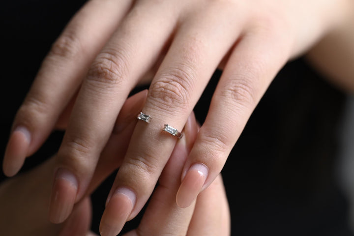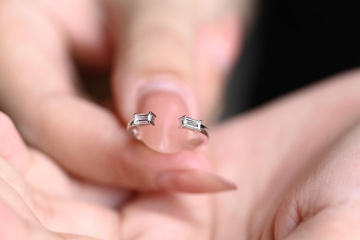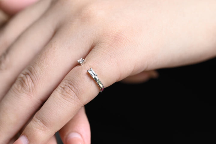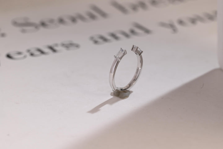 0.14CT Baguette Cut Two Stone CVD EF/VVS Diamond Open Wedding Band For Women