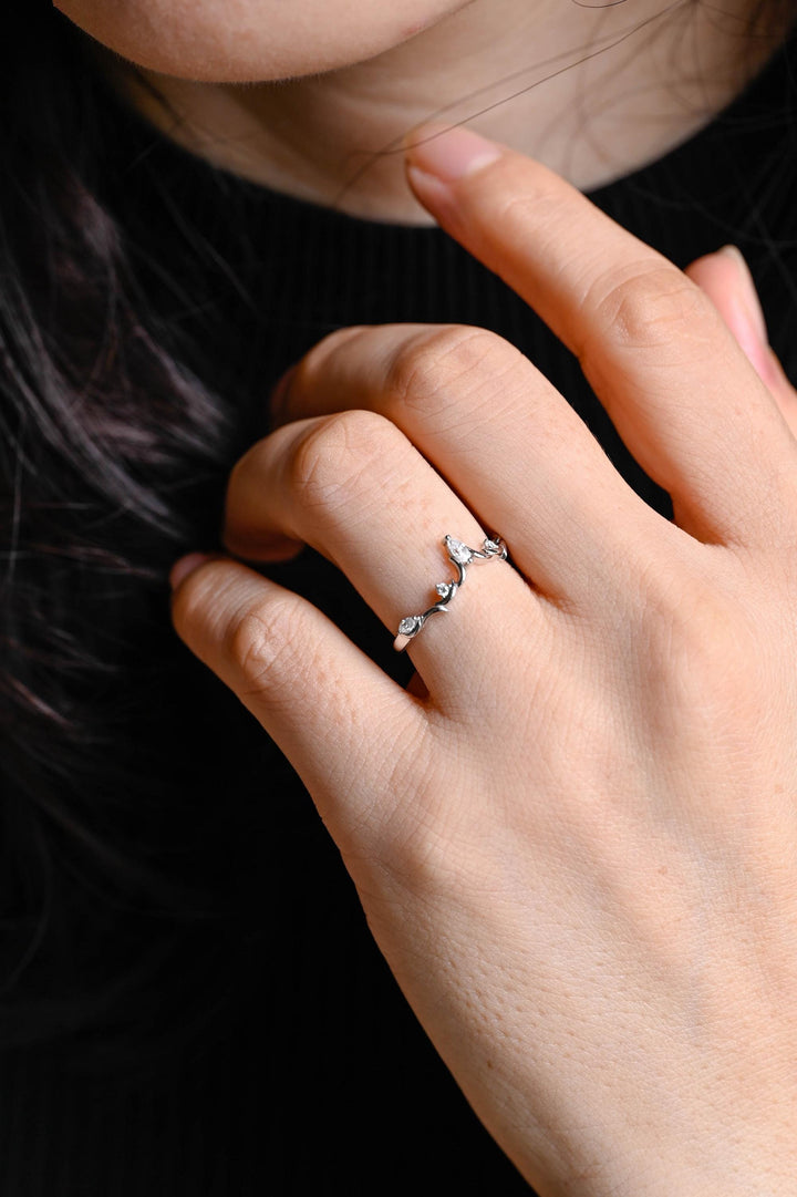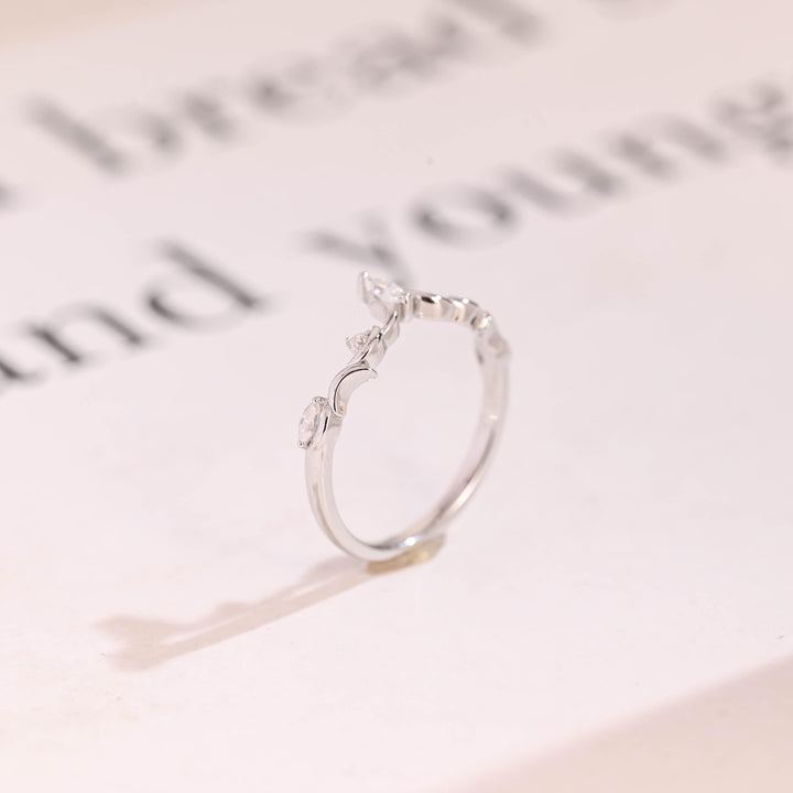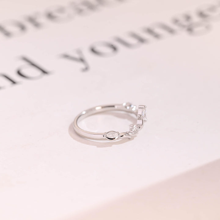 0.20CT Marquise & Round Cut Curved CVD EF/VVS Diamond Wedding Band For Women