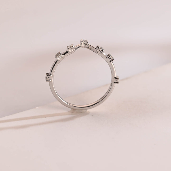 0.20CT Round Cut Curved CVD EF/VVS Diamond Wedding Band For Her