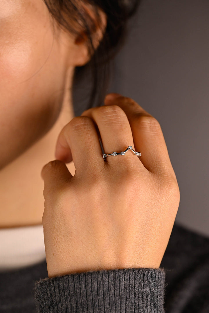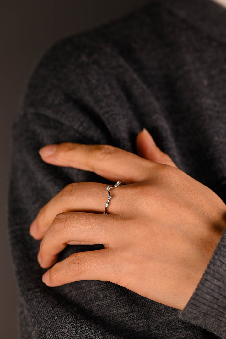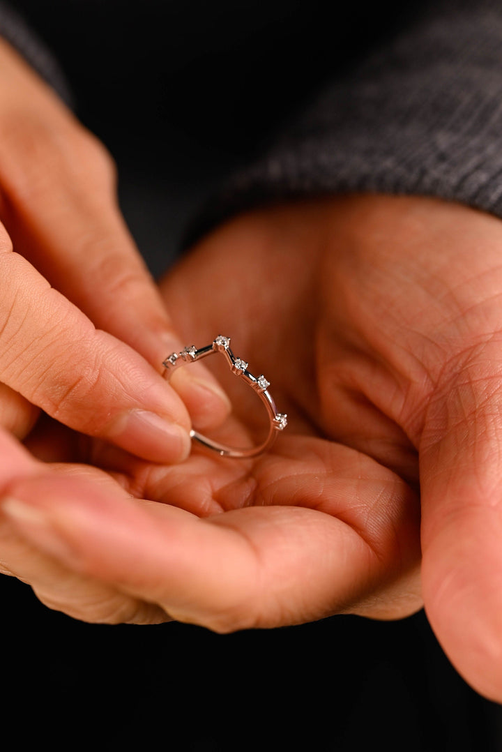 ✥ The Ring Shown in the Picture Holds Beautiful 0.20CT Curved Double Row EF-Color, VVS-Clarity CVD Lab Grown Diamonds.