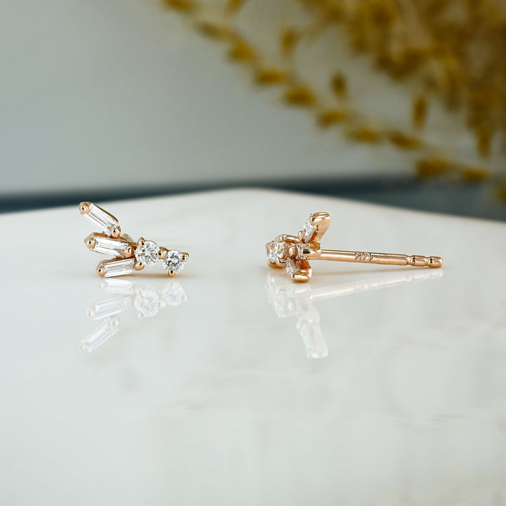0.23 TCW Round & Baguette Moissanite Diamond Cluster Earrings