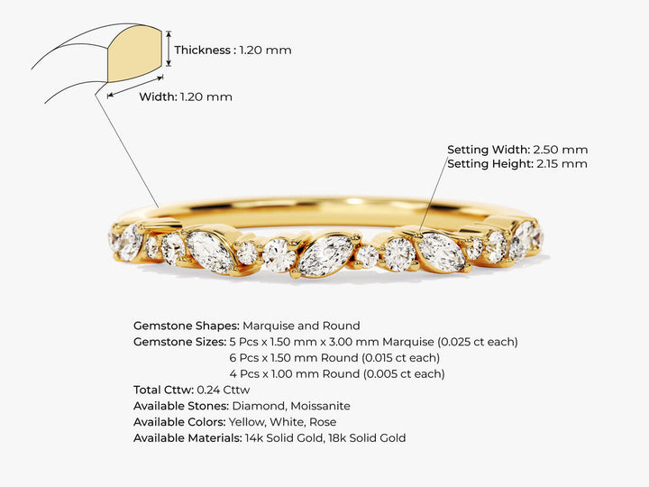 0.24CT Marquise & Round Cut Half Eternity CVD EF/VVS Diamond Wedding Band