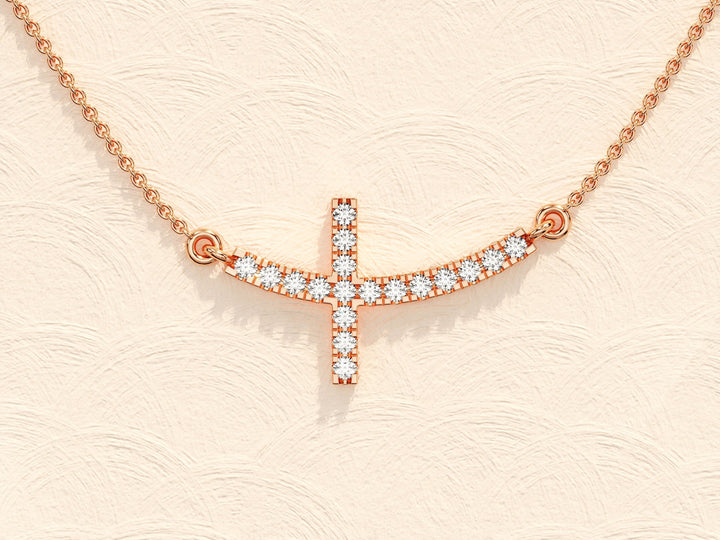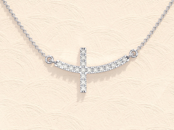 0.27 TCW Round Moissanite Diamond Sideways Cross Necklace
