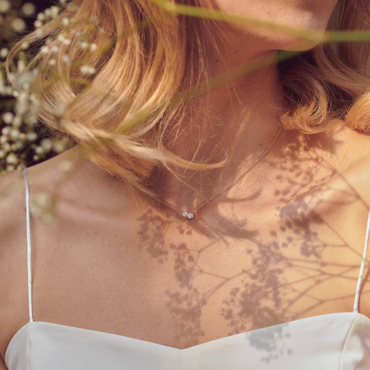 0.35 TCW Round Moissanite Diamond Two Stones Pendent Necklace