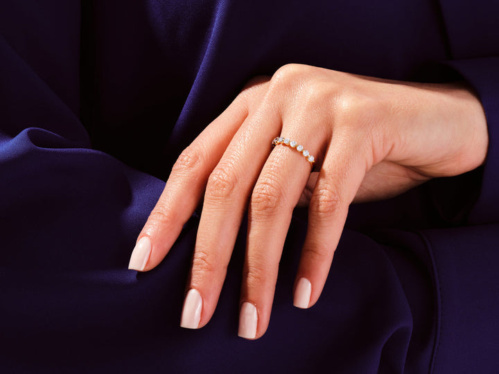 0.45CT Round Cut Nine Stone CVD EF/VVS Single Prong Diamond Wedding Band Anniversary Gift For Her