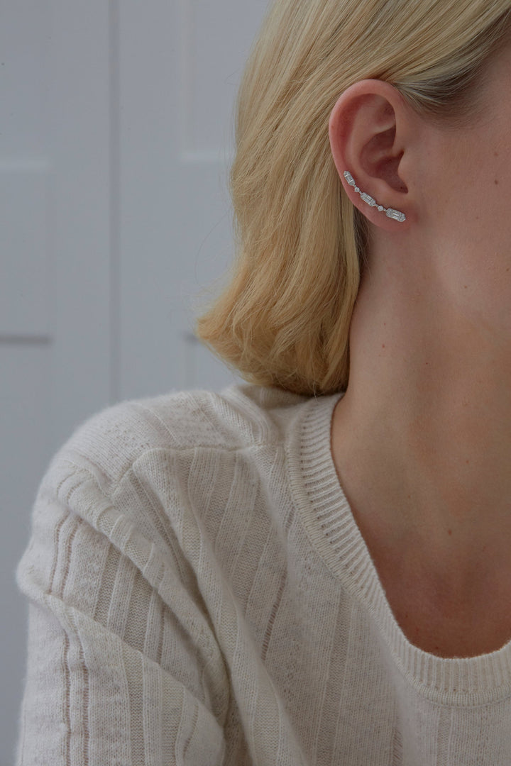 0.46 TCW Round & Baguette Moissanite Diamond Ear Crawler Earrings