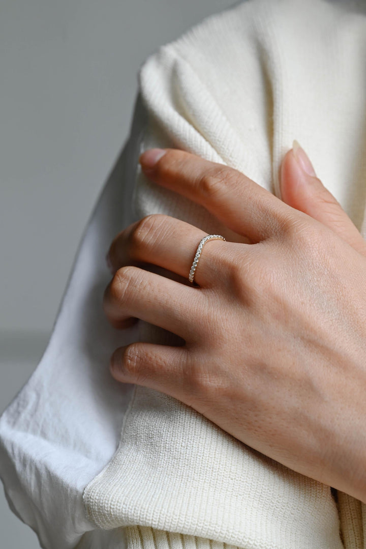 0.49CT Round Cut Curved CVD EF/VVS Diamond Wedding Band For Women