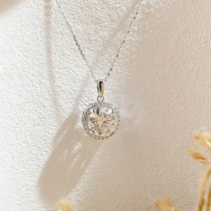 0.50 CT Round Moissanite Diamond Halo Necklace