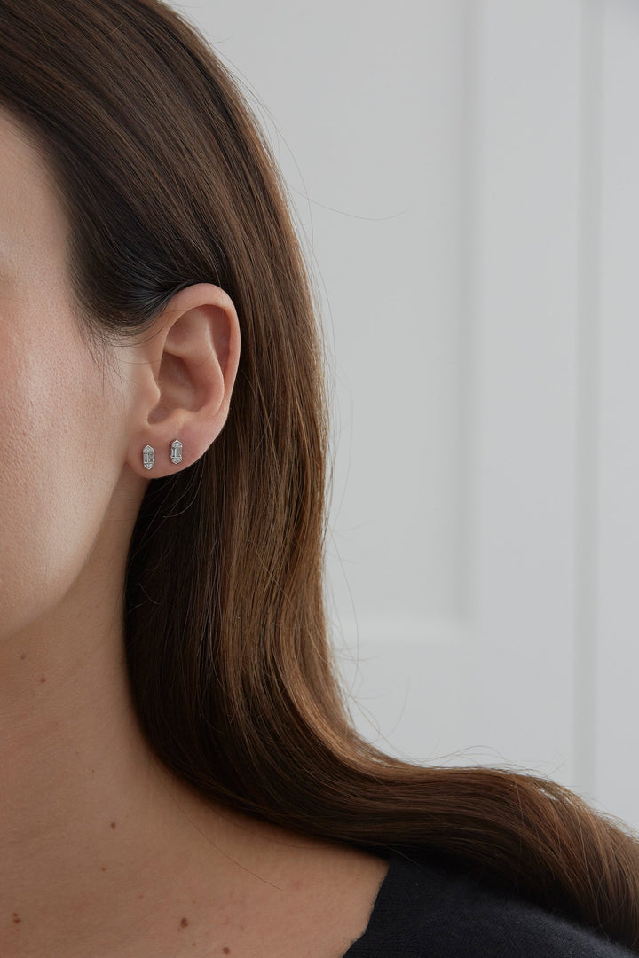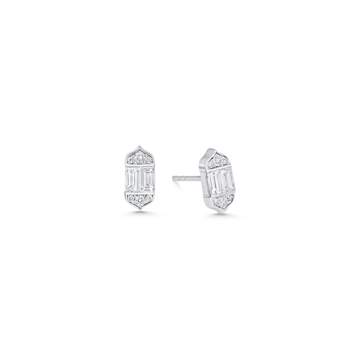 0.61 TCW Round & Baguette Moissanite Diamond Stud Earrings
