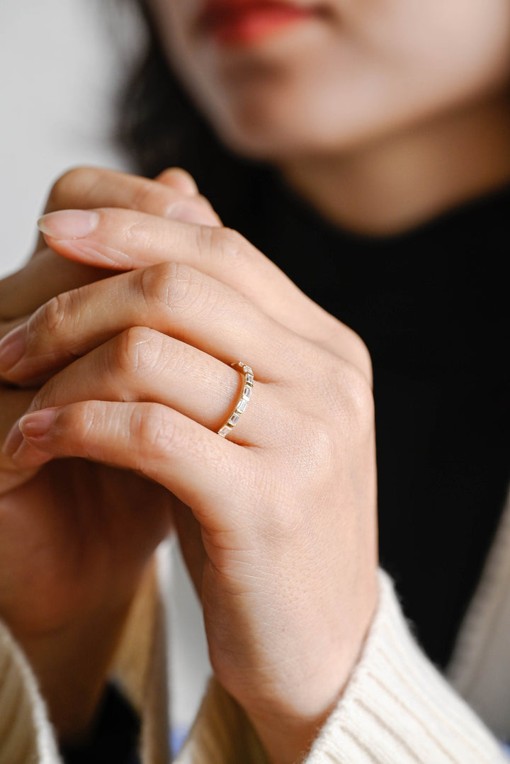 0.65CT Baguette Cut Bar CVD EF/VVS Diamond Wedding Band For Women