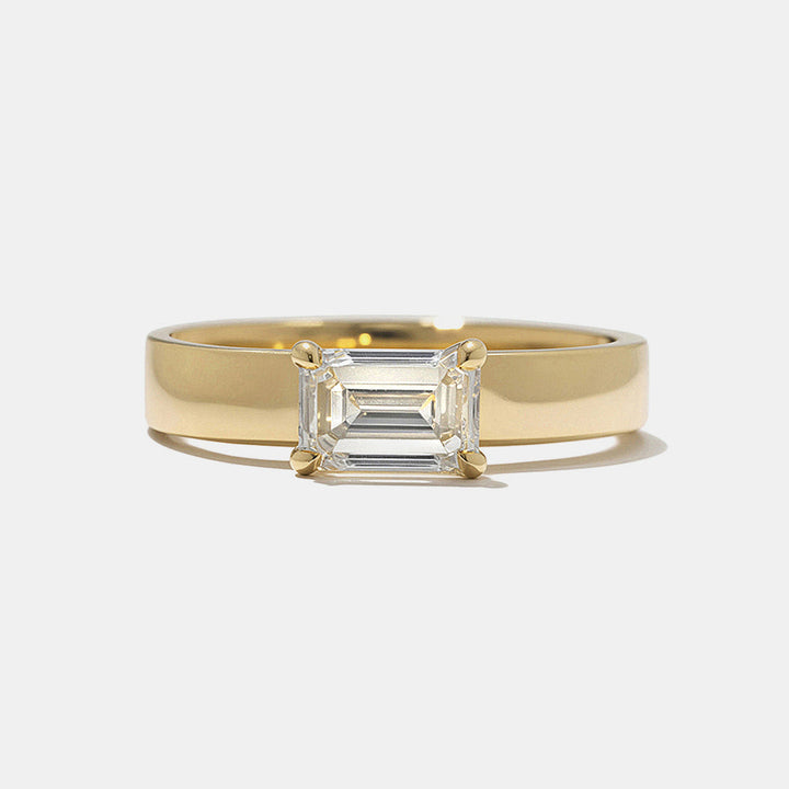 0.75CT-1.25CT East West Emerald Cut Diamond Solitaire Thick Engagement Ring