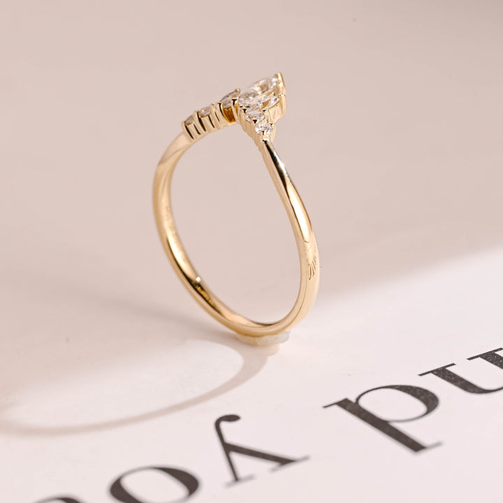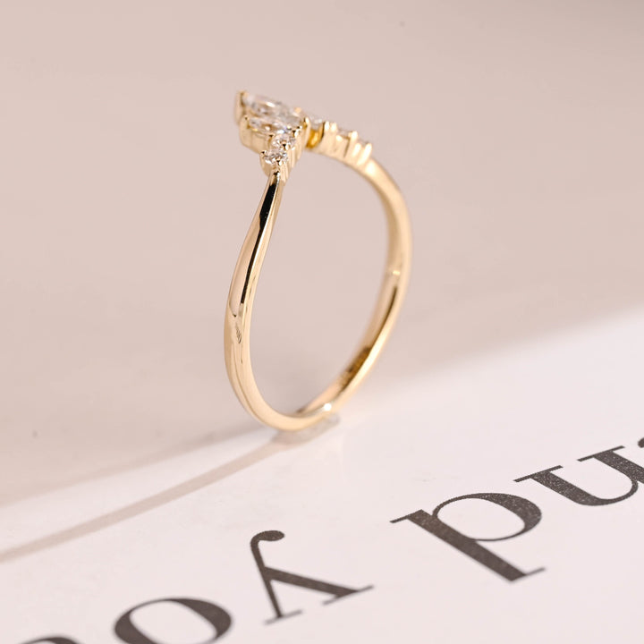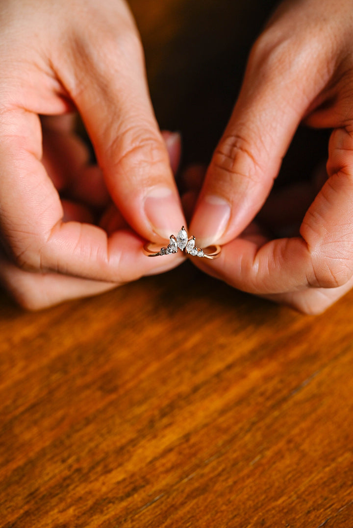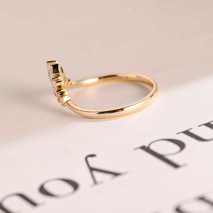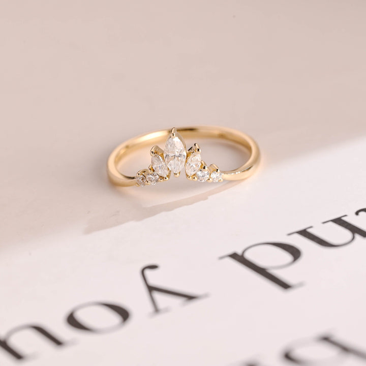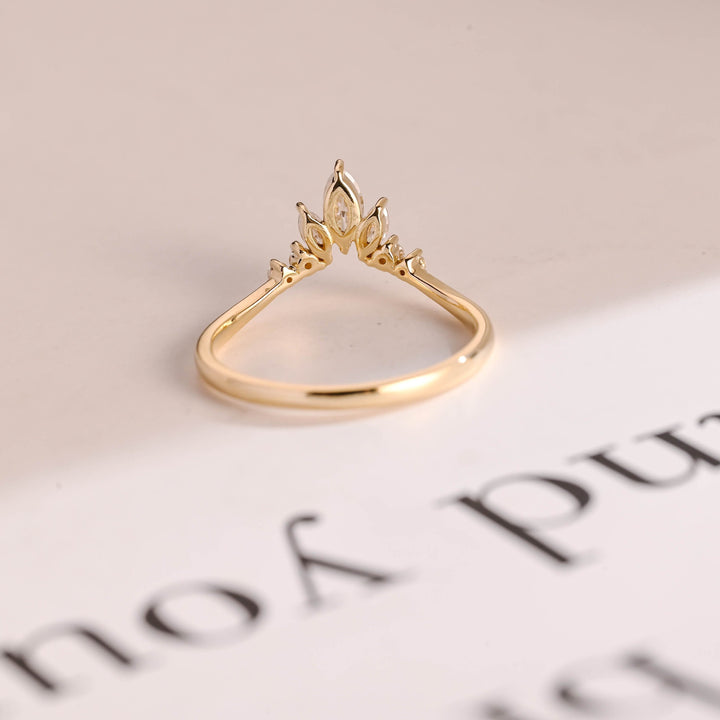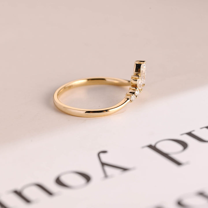 0.96CT Marquise & Round Cut Curved CVD EF/VVS Diamond Wedding Band For Women
