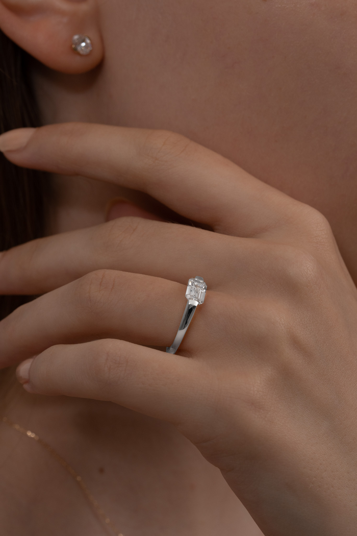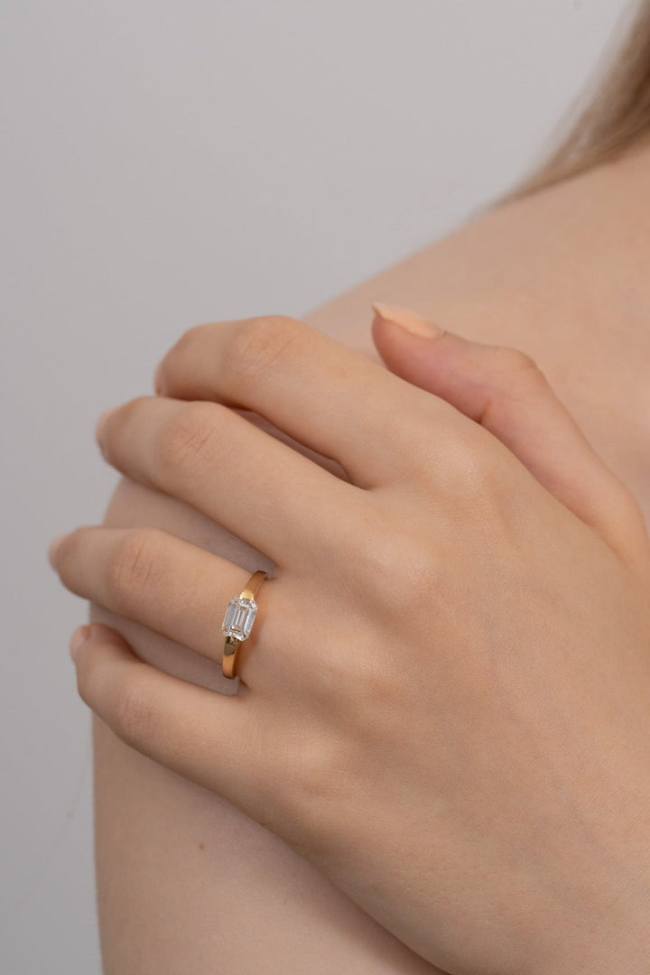 ✥ Crafted for modern elegance, this 1.0CT to 2.0CT East West Emerald Cut Moissanite Diamond Engagement Ring redefines sophistication. The east-west setting gives a contemporary twist to the timeless emerald cut, highlighting the stone's clean lines and dazzling brilliance. Set in a sleek band, this moissanite sparkles with the fire of a diamond but with ethical and sustainable beauty. A perfect symbol of refined love with a bold, modern edge.