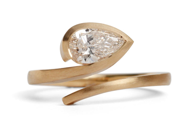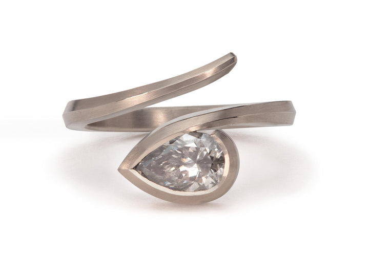 1.0CT-2.0CT Open Pear Cut Moissanite Diamond Bypass Engagement Ring