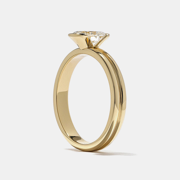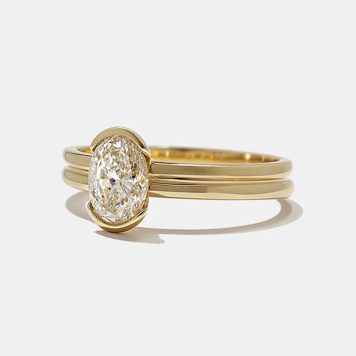 1.0CT-2.0CT Oval Cut Moissanite Half Bezel Diamond Engagement Ring