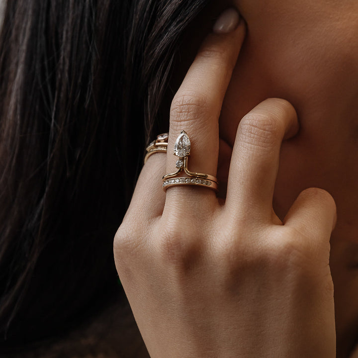 1.0CT-2.0CT Pear Cut Moissanite Diamond Unique Engagement Ring