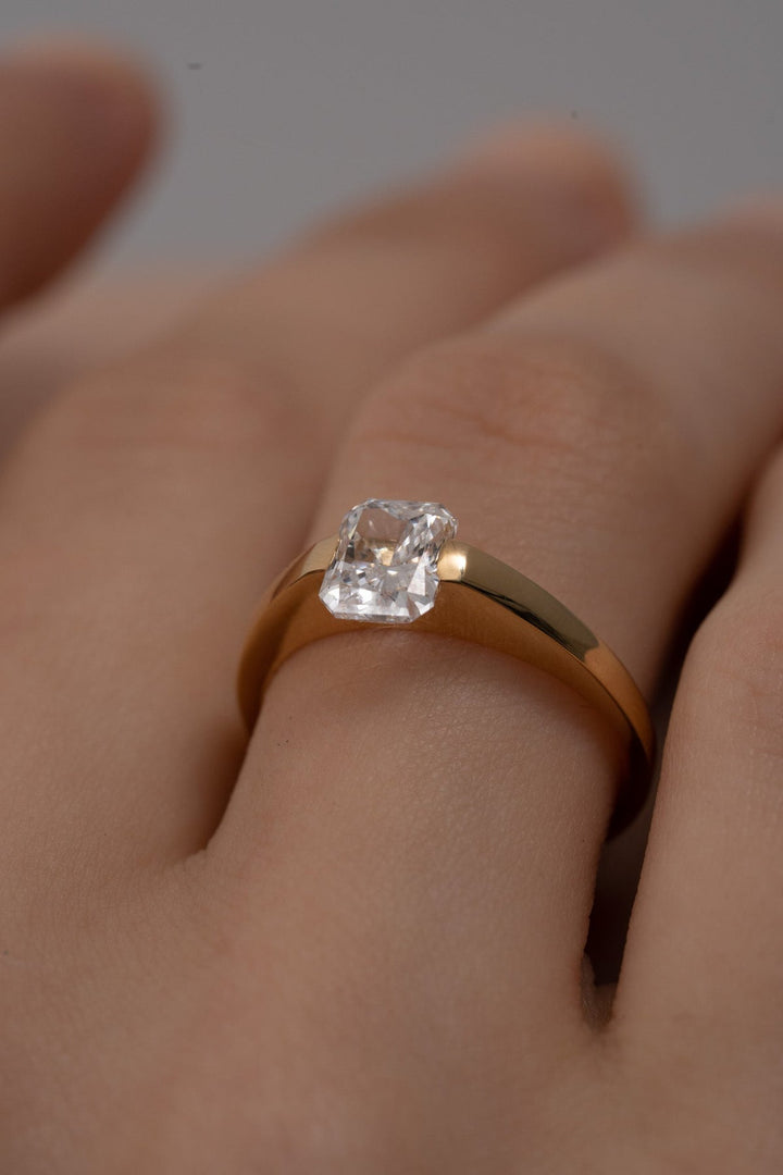 1.0CT-2.0CT Radiant Cut Moissanite Diamond Thick Engagement Ring