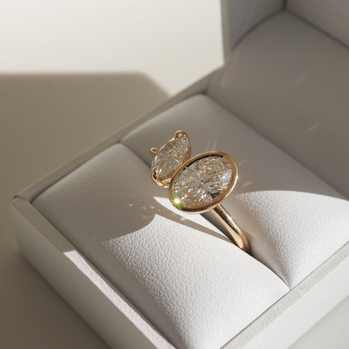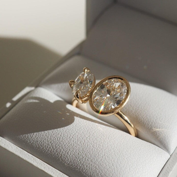 2.0CT-4.0CT Oval Cut Moissanite Bezel Set Two Stone Diamond Ring