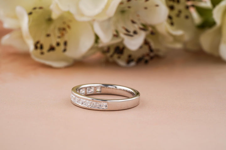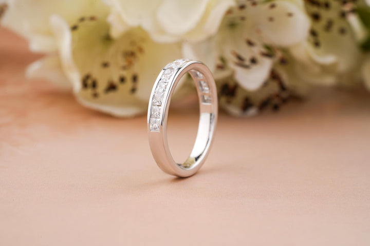 1.0CT Princess Cut Channel CVD EF/VVS Diamond Wedding Band For Women