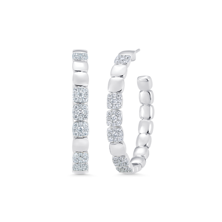 1.21 TCW Round Moissanite Diamond Beaded Hoop Earrings