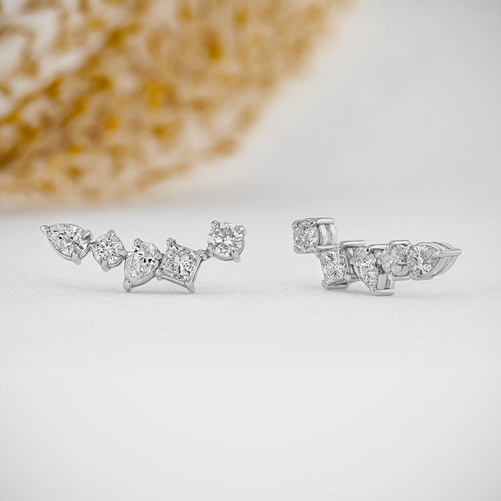 1.28 TCW Round, Princess & Pear Moissanite Diamond Ear Crawler Earrings