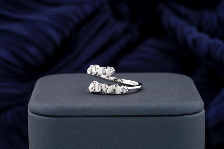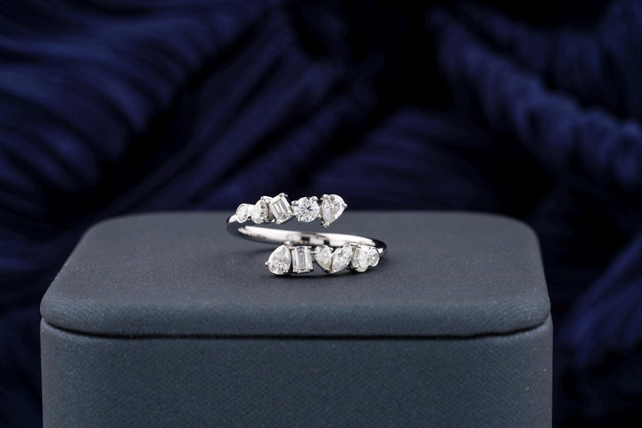1.3CT Multi Stone Cut Open CVD EF/VVS Diamond Wedding Band For Her