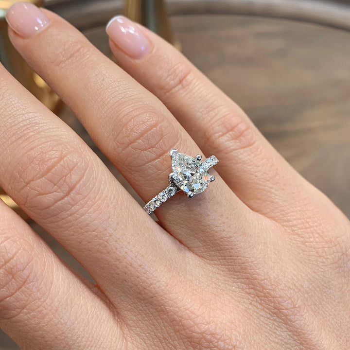 ✦ The Ring Shown in the Picture Holds a Beautiful 1.50 CT Pear Cut G-Color, VS2-Clarity CVD Lab Grown Diamond.