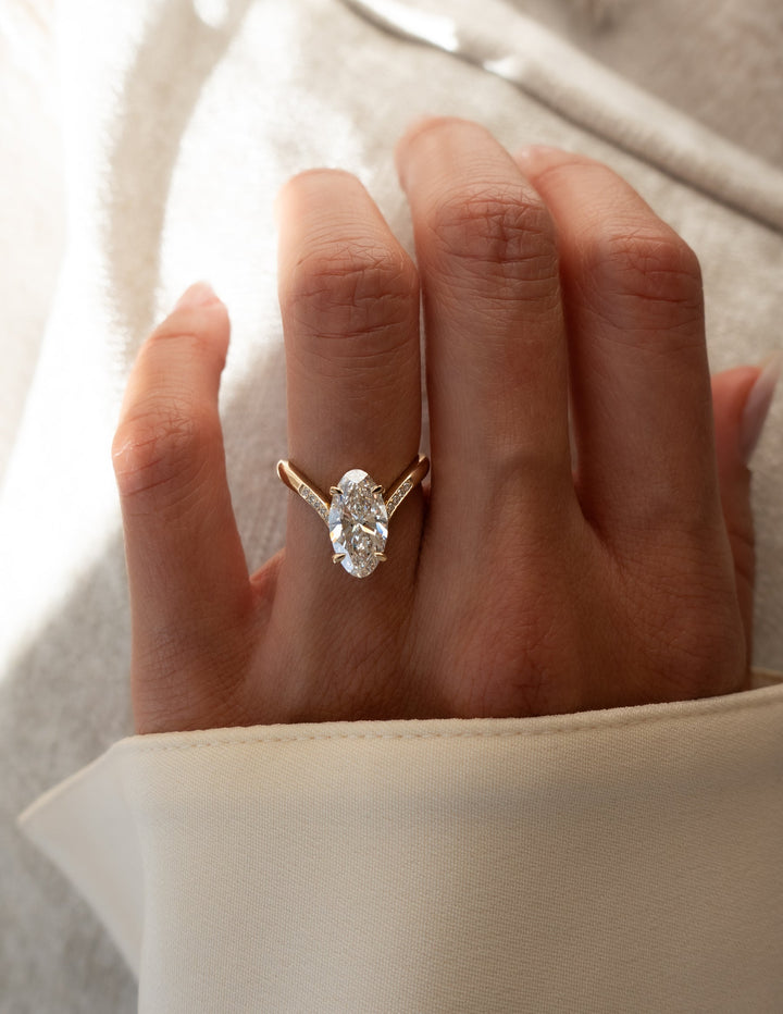 1.50CT-2.50CT Elongated Oval Cut Moissanite Pave Diamond Eve Engagement Ring