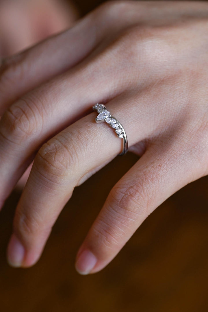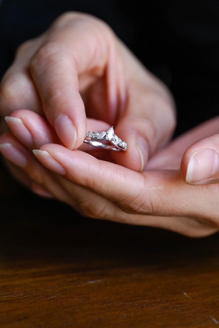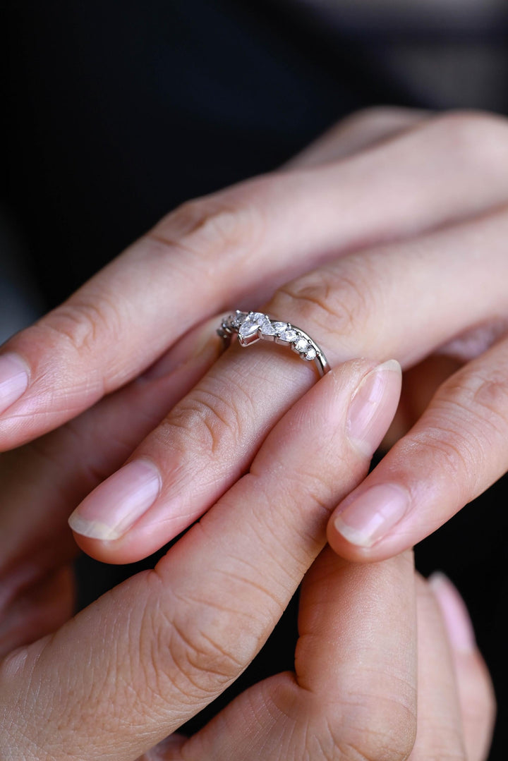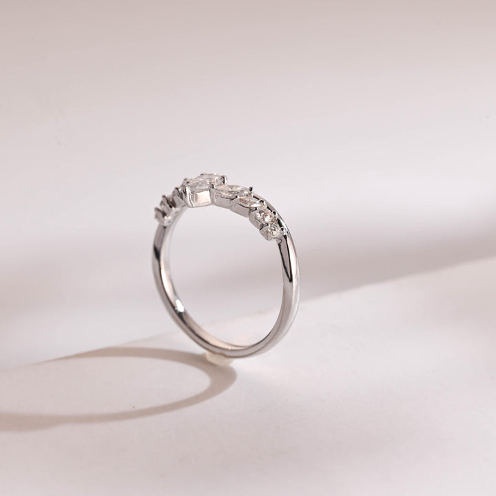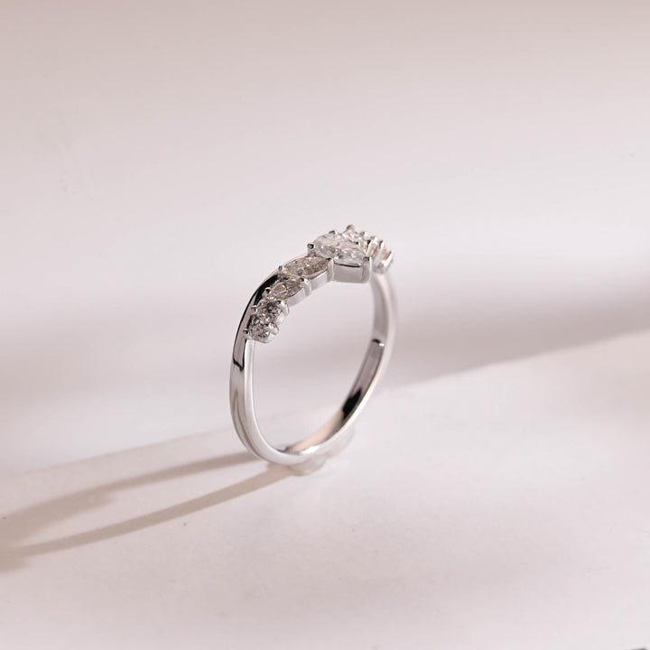 1.50CT Marquise & Round Cut Curved CVD EF/VVS Diamond Wedding Band For Women