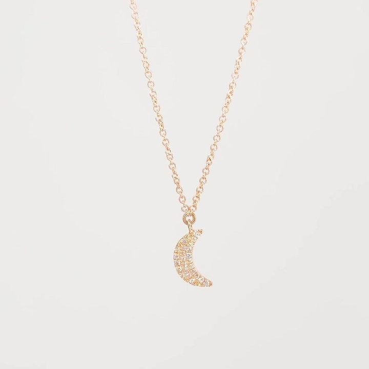 14k Rose Gold Pavé Diamond Moon Necklace