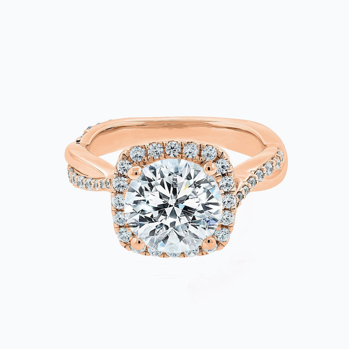 2.0 CT Round Halo & Twisted Pave CVD F/VS2 Diamond Engagement Ring
