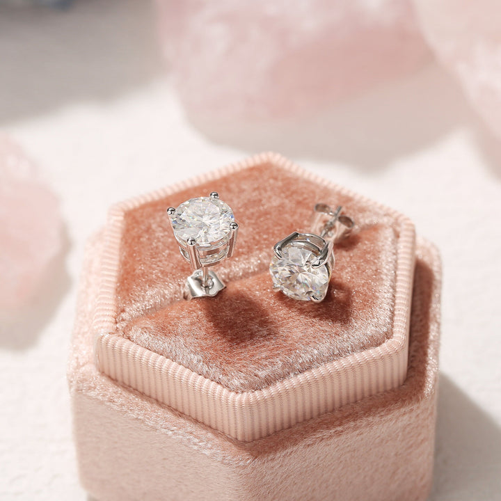 2.0 TCW Round Moissanite Diamond Solitaire Stud Earrings
