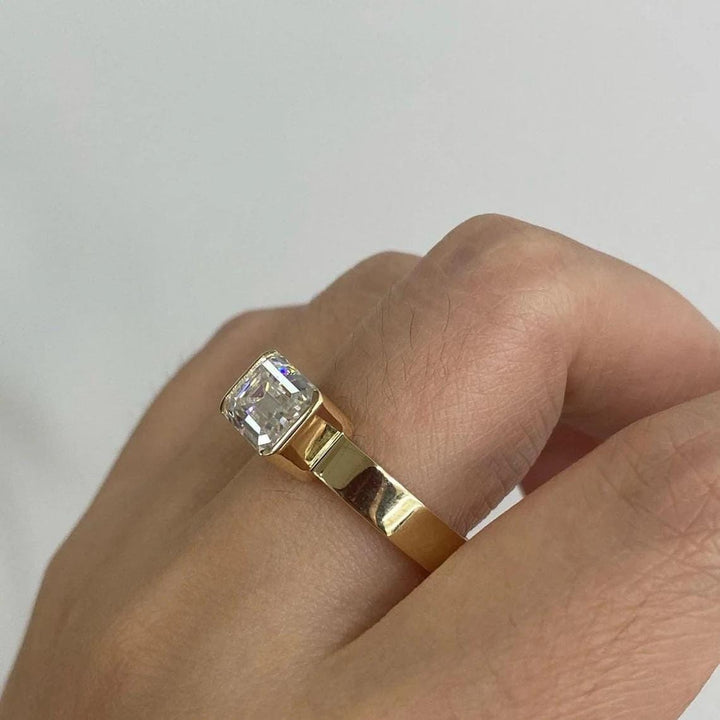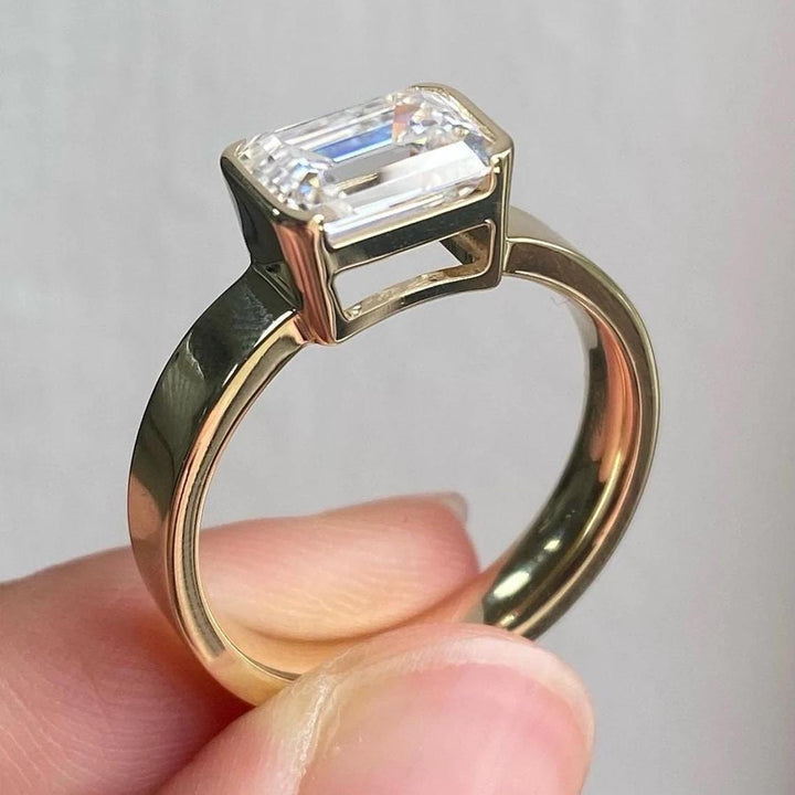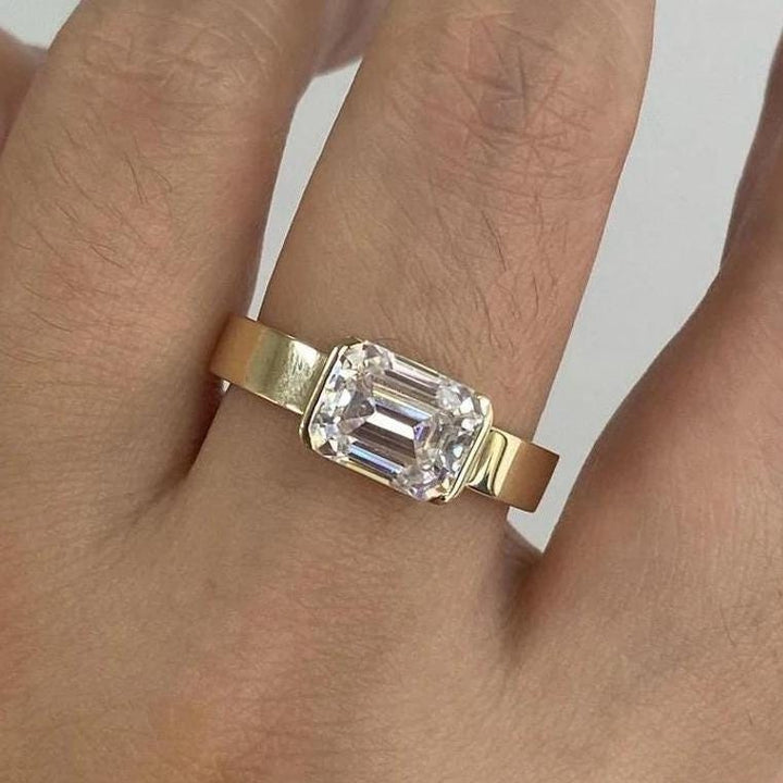 2.0CT East West Emerald Cut Moissanite Thick Band Engagement Ring