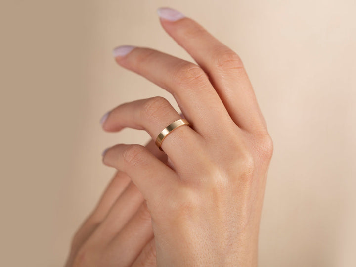 ✥ The 3.0mm classic flat wedding band with a matte brushed finish is an exceptional anniversary gift that combines modern style with enduring elegance. Made from solid gold, this band is available in 10K, 14K, or 18K purity, ensuring both luxury and longevity. The 3.0mm width offers a comfortable fit, while the matte brushed texture adds a contemporary flair, making it perfect for daily wear. Available in yellow gold, white gold, or rose gold, this wedding band is a timeless symbol of love and commitment, making it a thoughtful gift for celebrating special moments together.