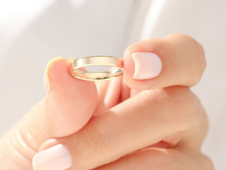 ✥ The 3mm beveled edge wedding band with a matte brushed finish is an elegant choice for those seeking a modern yet timeless design. Crafted from solid gold, this band is available in 10K, 14K, or 18K purity, providing a luxurious feel and durability. The 3.0mm width offers a comfortable fit, while the matte brushed texture gives it a contemporary edge. The beveled edges enhance the ring’s profile, adding dimension and sophistication. Available in yellow gold, white gold, or rose gold, this wedding band is a stunning symbol of love and commitment.