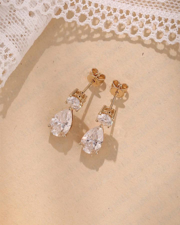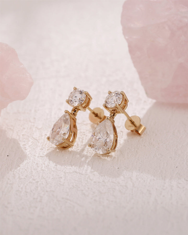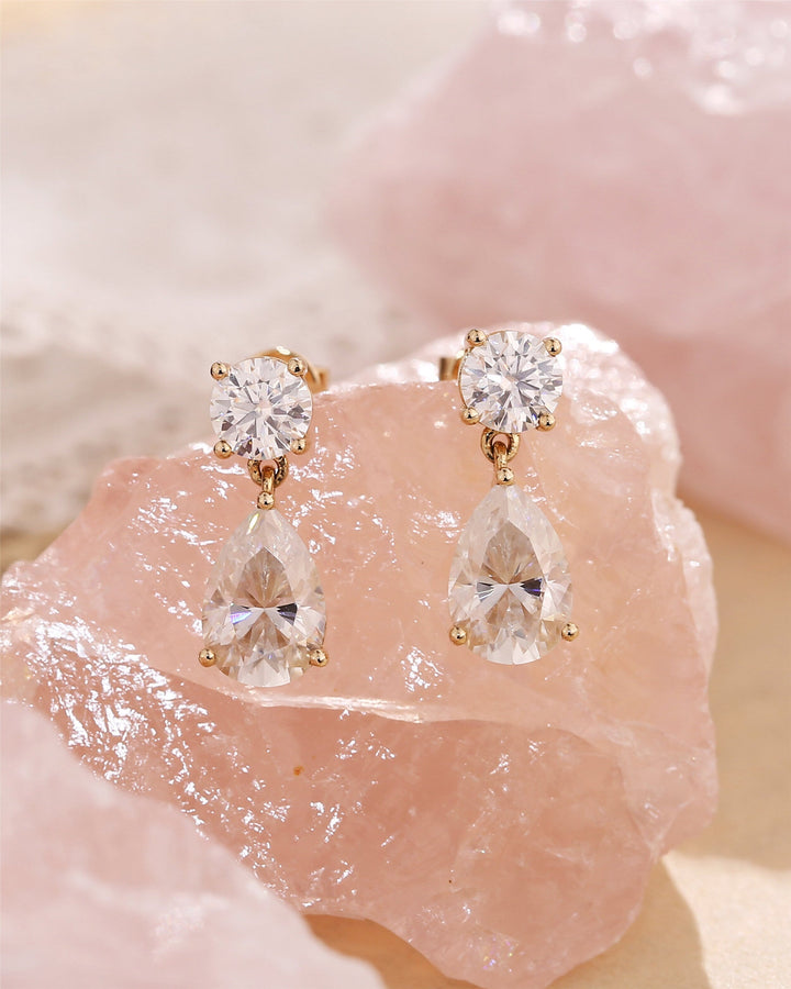 4.0 TCW Round & Pear Moissanite Diamond Dangle Drop Earrings