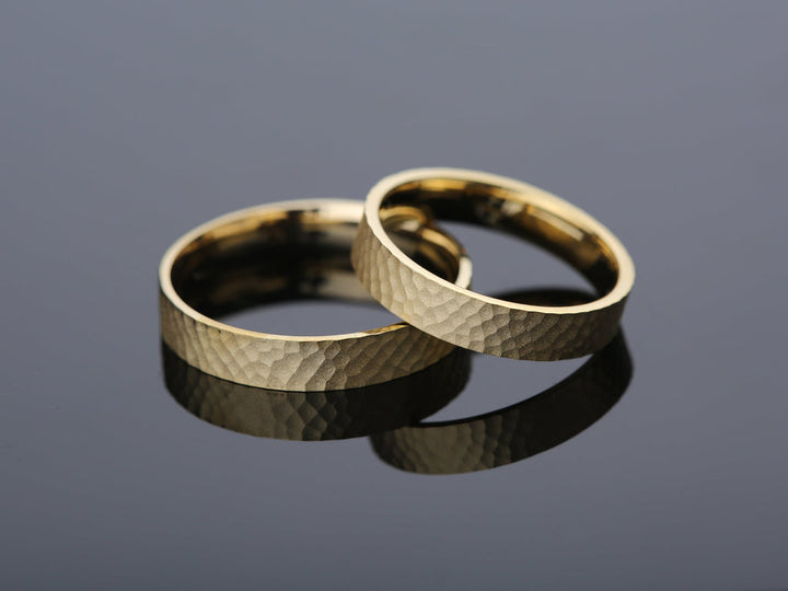 ✥ The 4.0mm hammered flat wedding band is an exceptional choice for an anniversary gift, combining a modern flat design with a unique textured finish. Crafted from solid gold, this band is available in 10K, 14K, or 18K purity, ensuring both durability and luxury. The 4.0mm width provides a comfortable fit, while the hammered texture adds a distinctive, handcrafted touch that enhances its visual appeal. Available in yellow gold, white gold, or rose gold, this flat wedding band is a beautiful and meaningful symbol of love and commitment, perfect for celebrating special occasions.