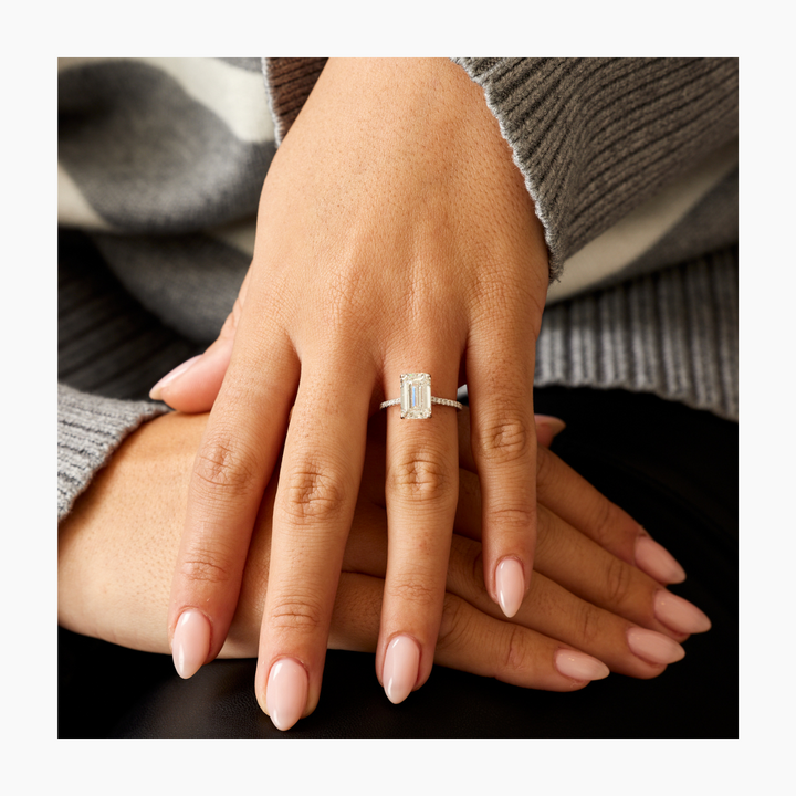 ✦ The Ring Shown in the Picture Holds a Beautiful 4.5 CT Emerald G-Color, VS-Clarity CVD Lab Grown Diamond and is Size 6 US.
