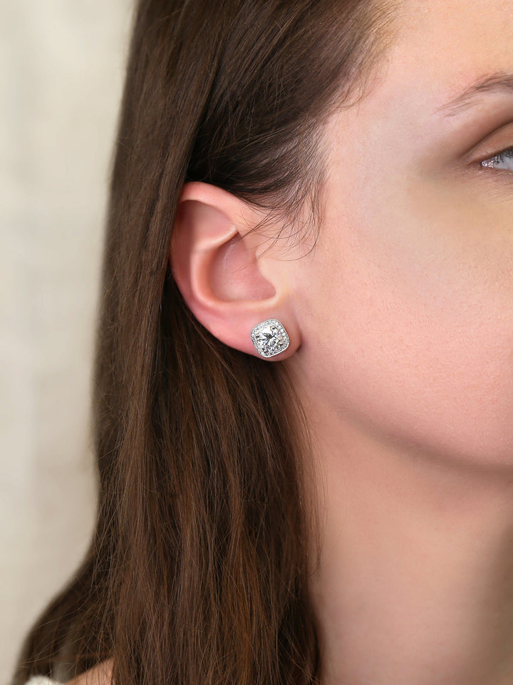 4ct Moissanite Diamonds Cushion Halo Stud Earrings
