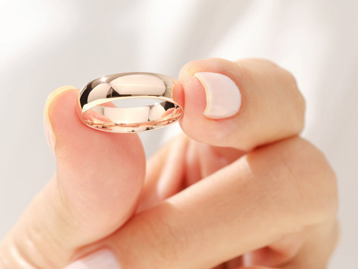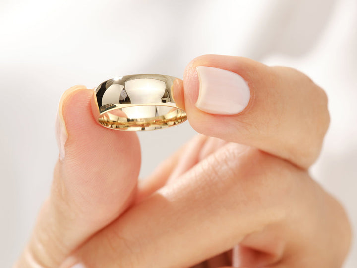 ✥ The 5.0mm classic dome shine wedding band is a timeless and elegant choice, perfect for symbolizing eternal love and commitment. Crafted from solid gold, this band is available in 10K, 14K, or 18K purity, ensuring both durability and luxury. The 5.0mm width offers a comfortable, substantial fit, while the high-shine finish gives the band a sleek and polished appearance that beautifully catches the light. Available in yellow gold, white gold, or rose gold, this classic dome wedding band is a stunning representation of enduring love.