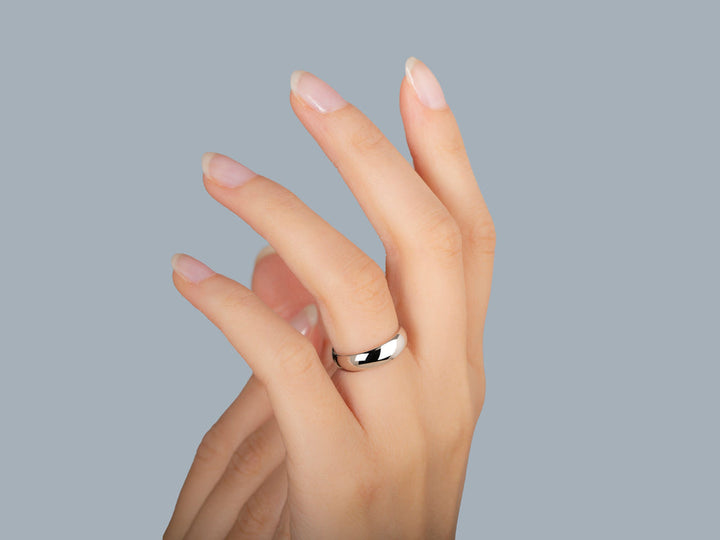 ✥ The Ring Shown in the Picture Holds Beautiful 5.0mm Classic Dome Shine Wedding Band.