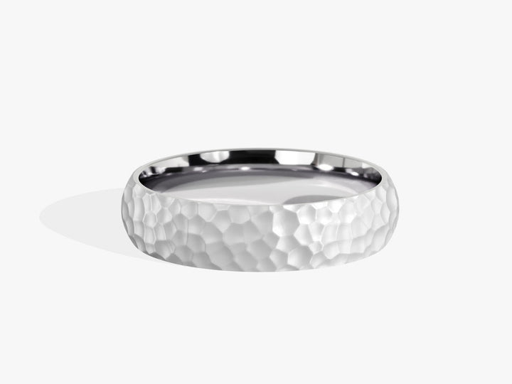 ✥ The Ring Shown in the Picture Holds Beautiful 5.0mm Hammered Wedding Band Dome Band For Her.