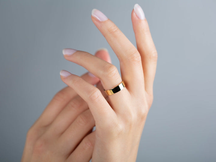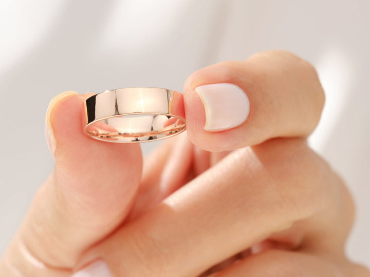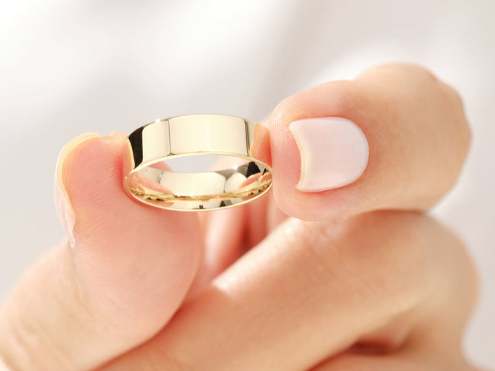 ✥ The 5.0mm shine classic flat wedding band is a perfect choice for those seeking a timeless yet contemporary piece. Made from solid gold, this band is available in 10K, 14K, or 18K purity, ensuring both luxury and durability. The 5.0mm width provides a comfortable and substantial fit, while the high-shine finish enhances its sleek and polished appearance, making it a standout accessory. Available in yellow gold, white gold, or rose gold, this classic flat wedding band serves as a beautiful symbol of love and commitment, ideal for weddings or special occasions.