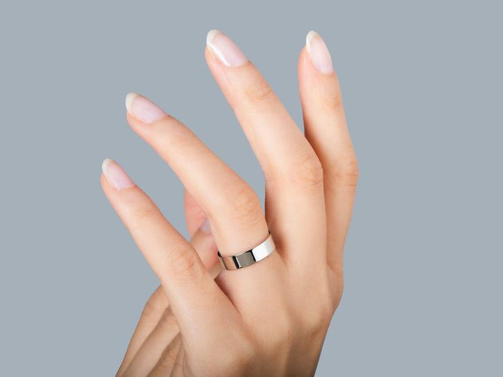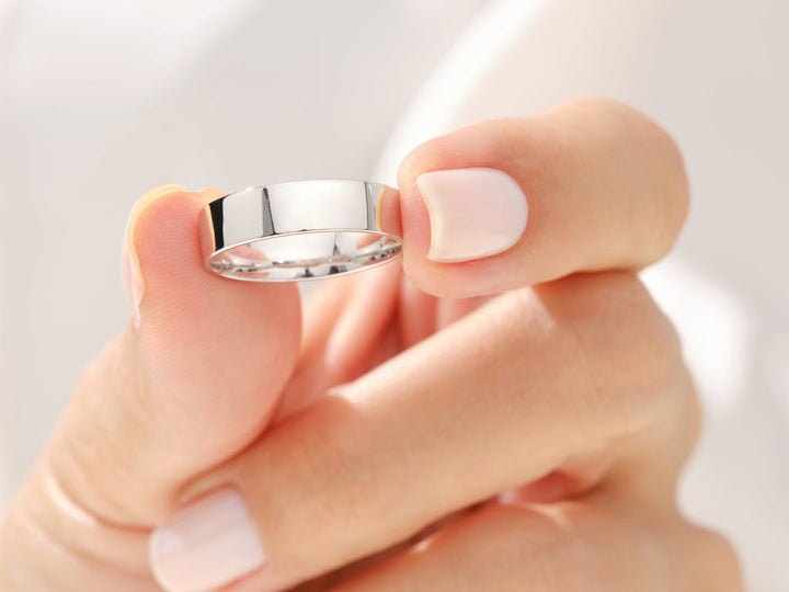 ✥ The Ring Shown in the Picture Holds Beautiful 5.0mm Shine Classic Flat Wedding Band.
