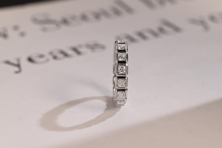 5.30CT Princess Cut Bezel Set CVD EF/VVS Diamond Eternity Wedding Band For Women