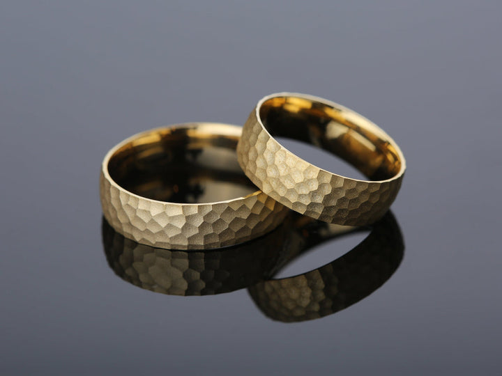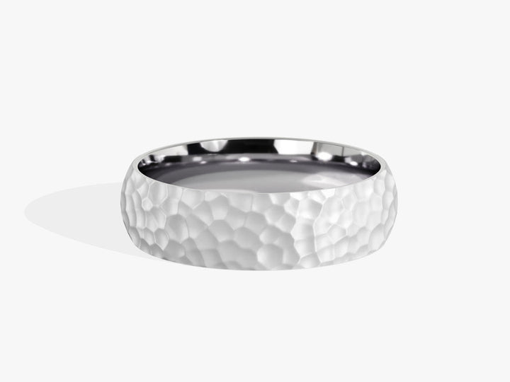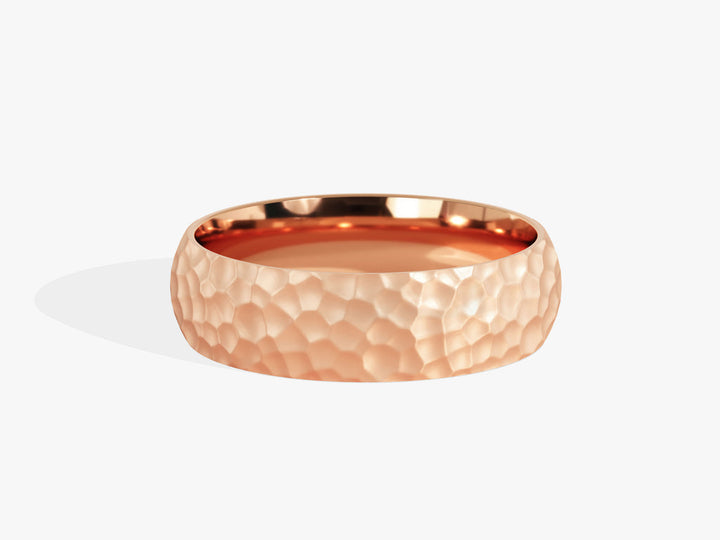 ✥ The 6.0mm hammered dome wedding band for women is a striking combination of texture and elegance, designed to make a bold statement. Crafted from solid gold, this band is offered in 10K, 14K, or 18K purity, ensuring both quality and durability. The hammered finish creates a unique, artisanal look, adding dimension and character to the band, while the dome shape enhances its classic appeal. With a comfortable 6.0mm width, this wedding band is perfect for everyday wear or special occasions. Available in yellow gold, white gold, or rose gold, it symbolizes enduring love and commitment, making it an ideal choice for weddings, anniversaries, or as a meaningful gift.