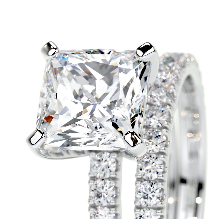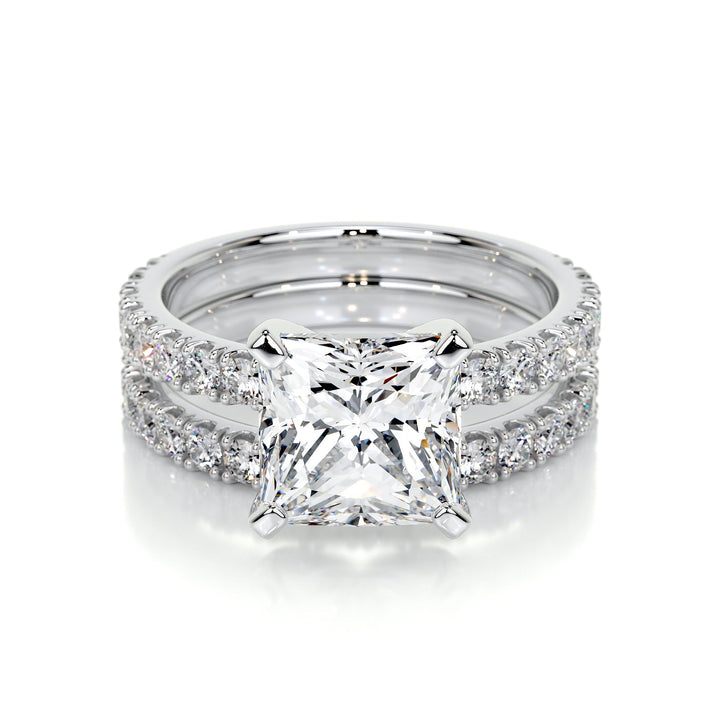 A dream come true?_x0080__x0094_this stylish engagement ring fit for a princess shows your love for her. The princess center diamond is showcased in a 4-prong setting and completed with icy white pave diamond shank. This is a ring to cherish for a lifetime of love. Including Matching Wedding Band. This Ring is Certified by a Third Party Gemological institute