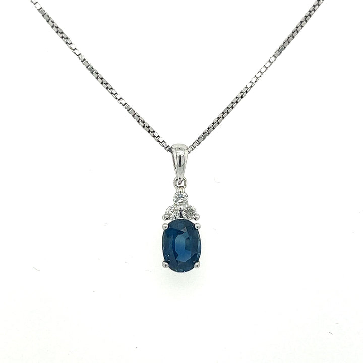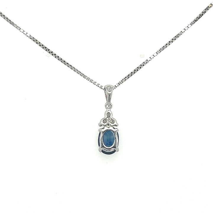 Blue Oval Sapphire Diamond Necklace for Women